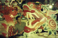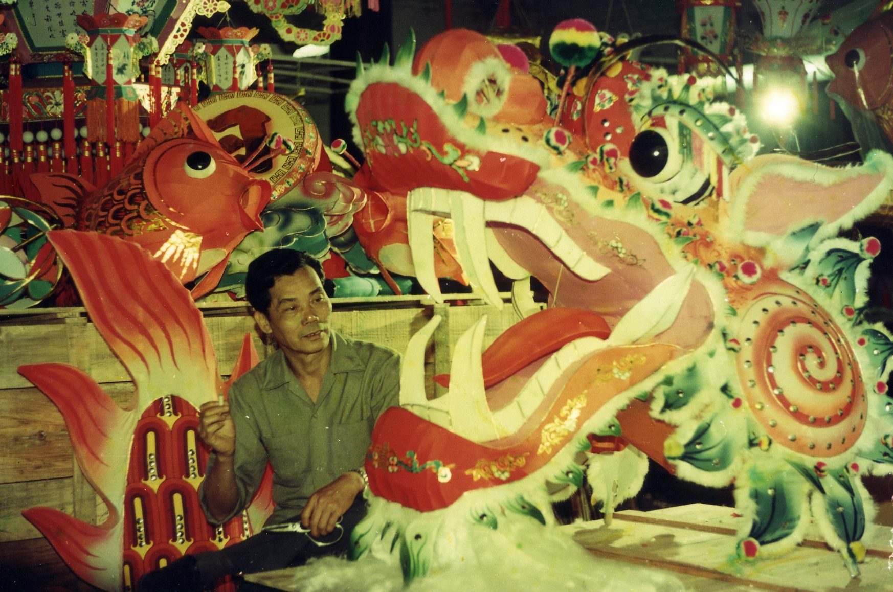邓辉师傅不但制作了无数精美的彩灯,并勇于创新,从彩灯的题材、灯型、工艺都不断丰富和提高。1950’年代就创制了大型“杂技”、“儿童乐园”电动人物组灯,在广州文化公园展出轰动南粤;他为澳大利亚设计制作的百米大彩龙在墨尔本和英国展演誉满而归,被外国友人称为“中国佛山是彩龙的故乡”。他首先挖掘制作了佛山历史传统的“头牌灯”,灯型美、工艺精、入选参加全国工艺美术作品展览;大彩龙被澳洲墨尔本博物馆收藏。他为陕西省和中山市制作的中国历代皇帝像数十个,被称为灯色编制的奇迹。